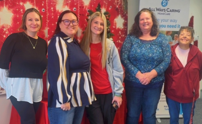 All Ways Caring HomeCare Scheduler Candice Cruce, Branch Manager Katelyn LeClaire, Caregiver Cadence Hess, Caregiver Katy Perry, and Caregiver Donna Gold have been Working Smart and Doing Good in Tulsa, OK.